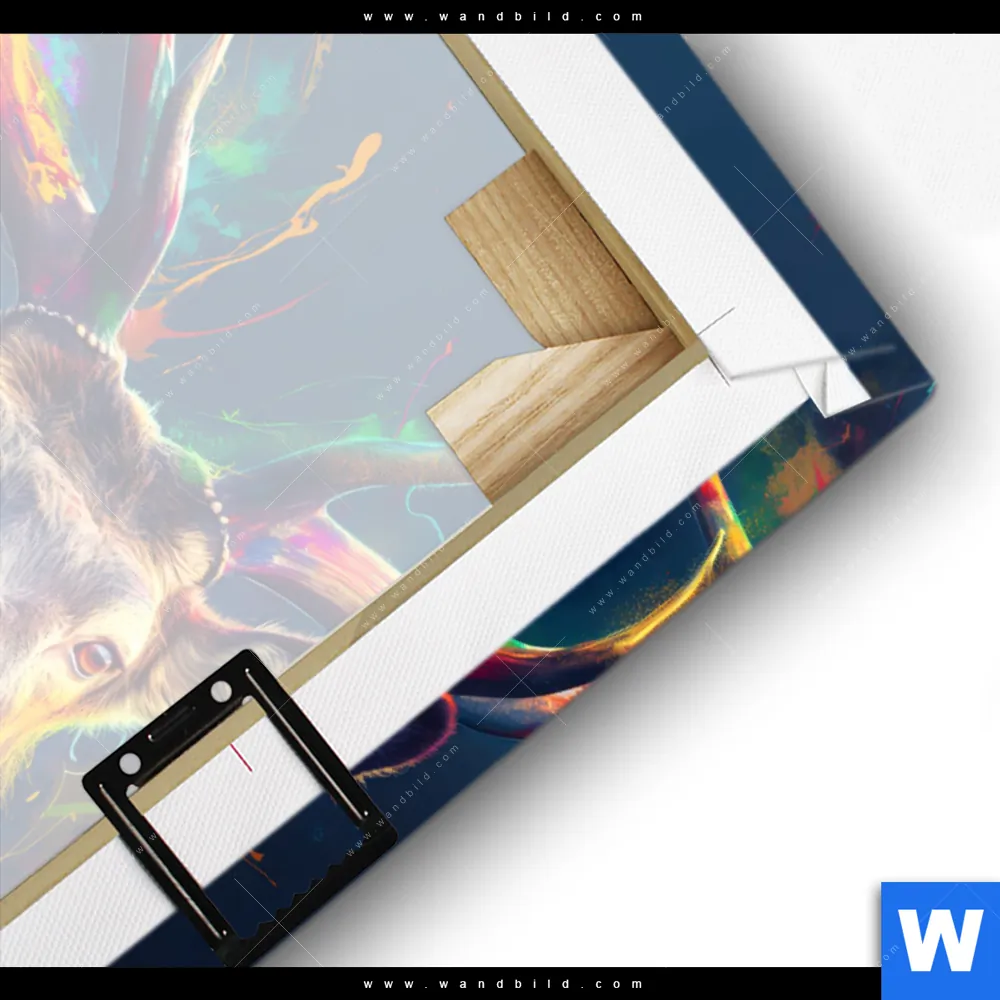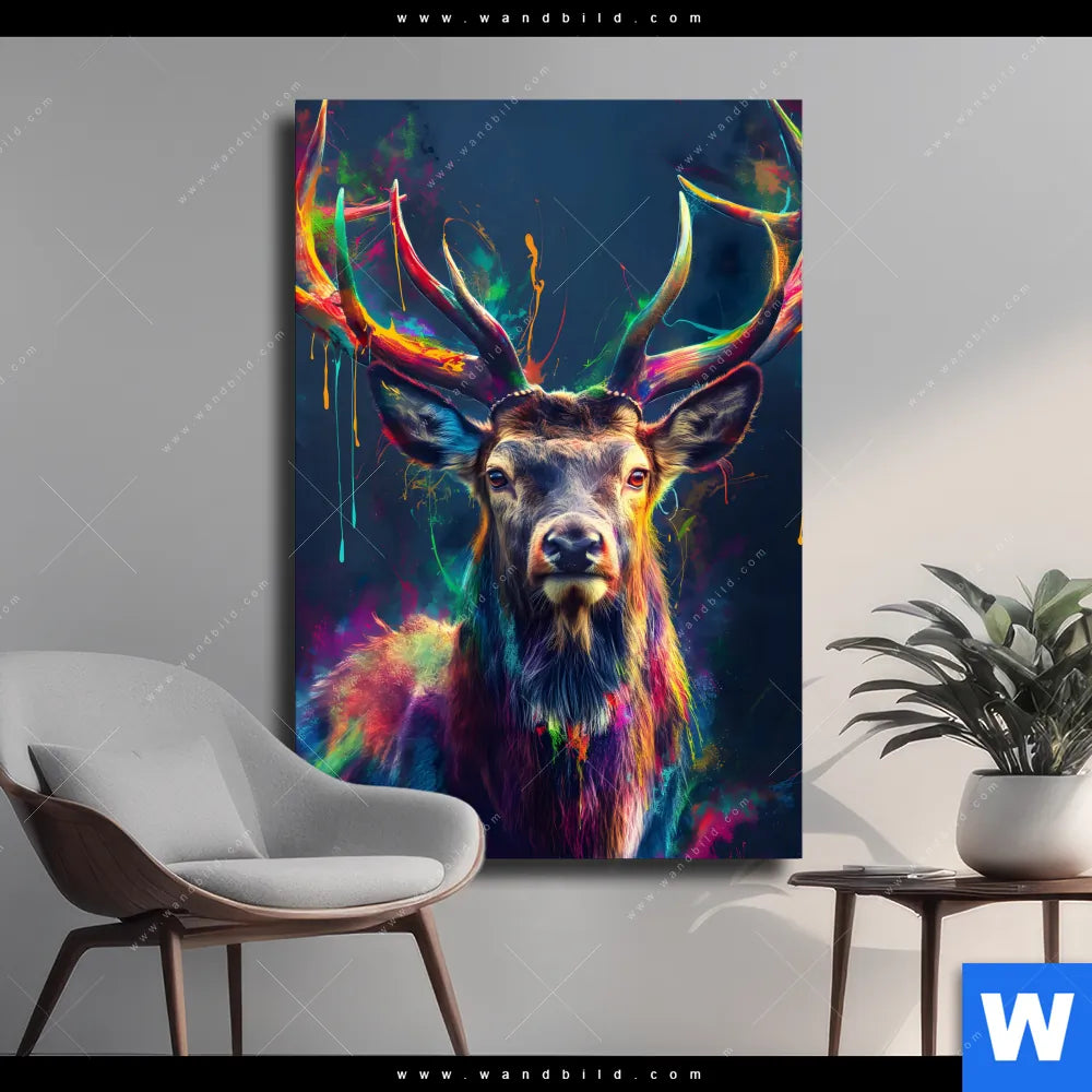 Leinwandbild | Hirsch im leuchtenden Farbmix | Hochformat