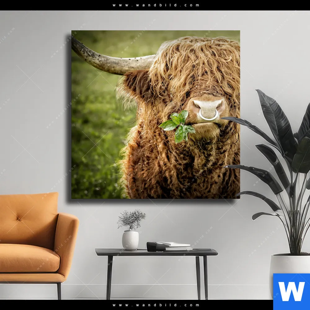 Leinwandbild | Hochland-Rind mit Nasenring | Quadrat