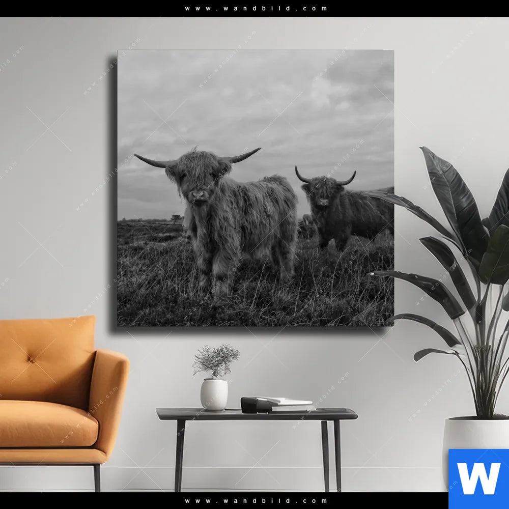 Leinwandbild | Hochland-Rind Schwarz-Weiß | Quadrat