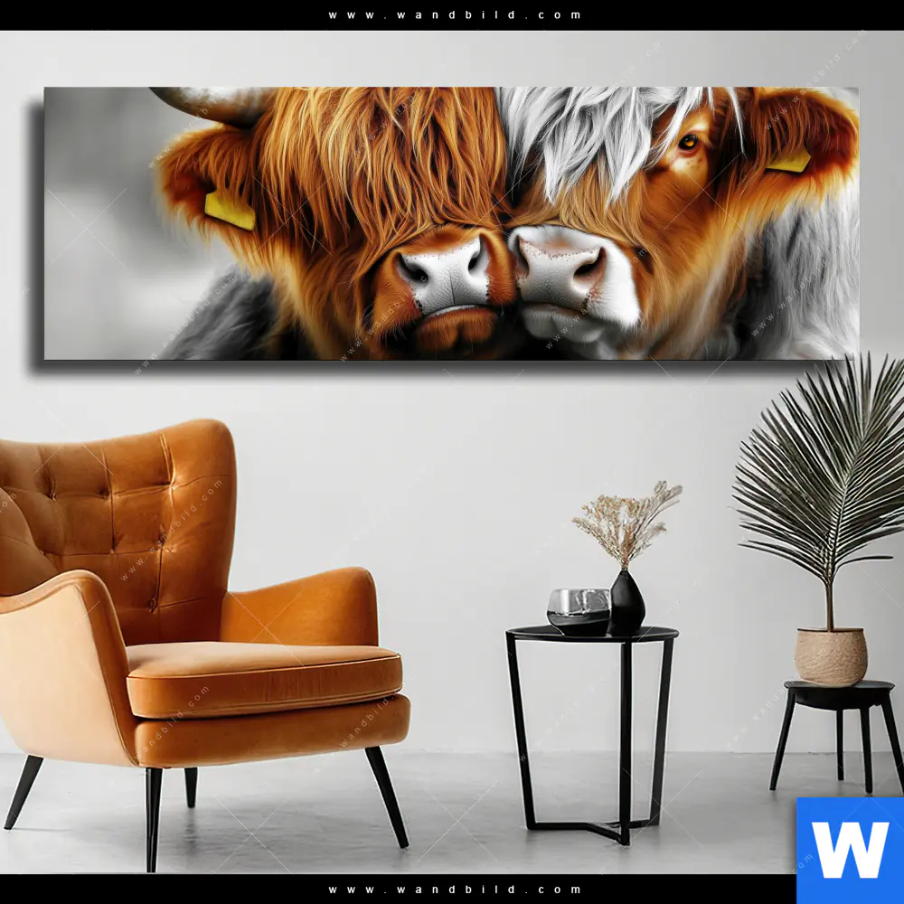 Leinwandbild | Hochlandrinder - Harmonie der Natur | Panorama