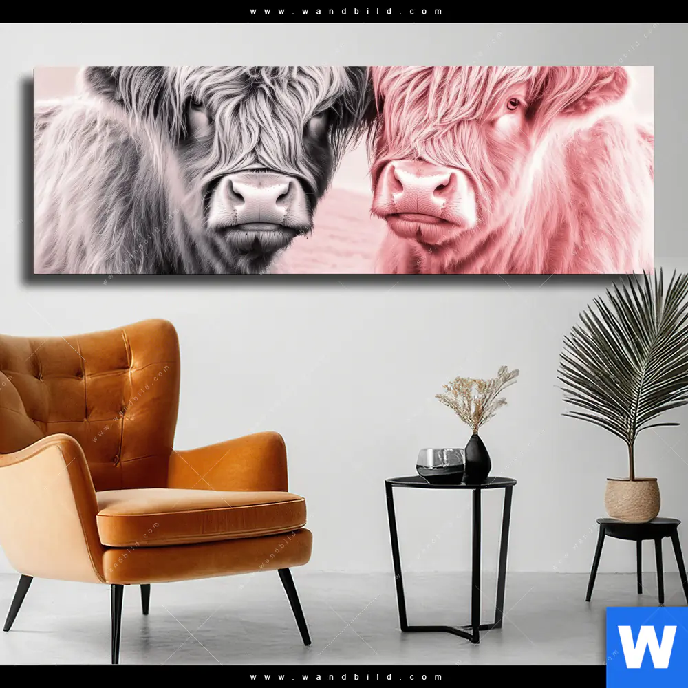 Leinwandbild | Hochlandrinder - Harmonie in Pastell | Panorama