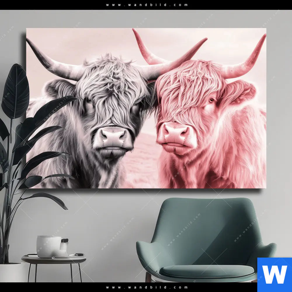 Leinwandbild | Hochlandrinder - Harmonie in Pastell | Querformat