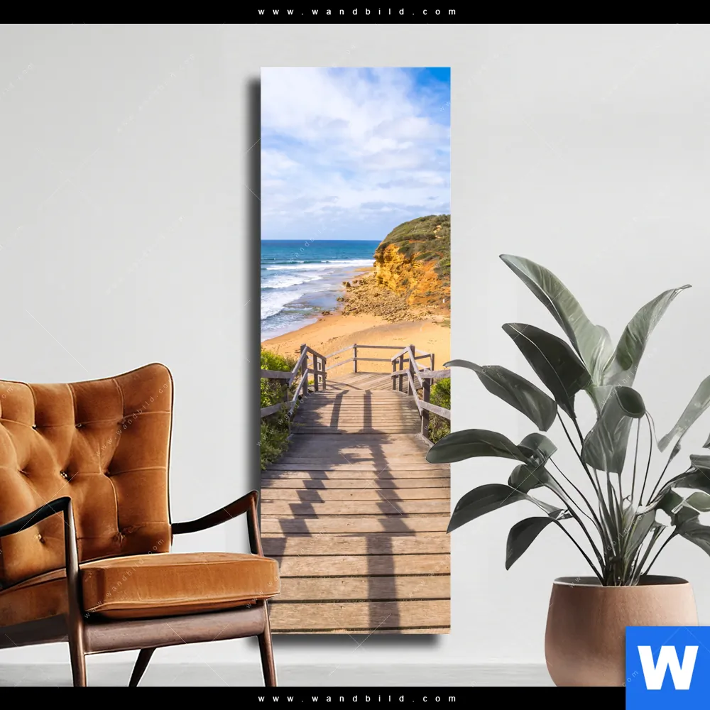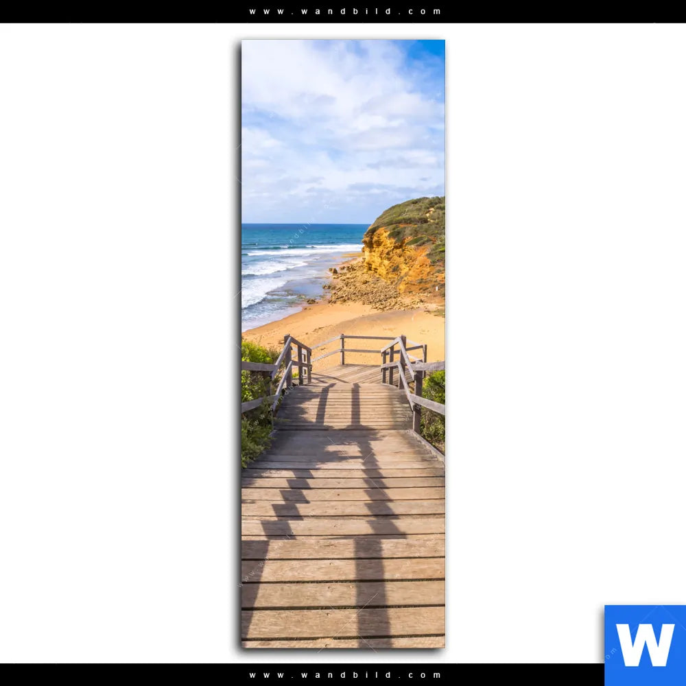 Leinwandbild | Holztreppe zum einsamen Strand | Schmal