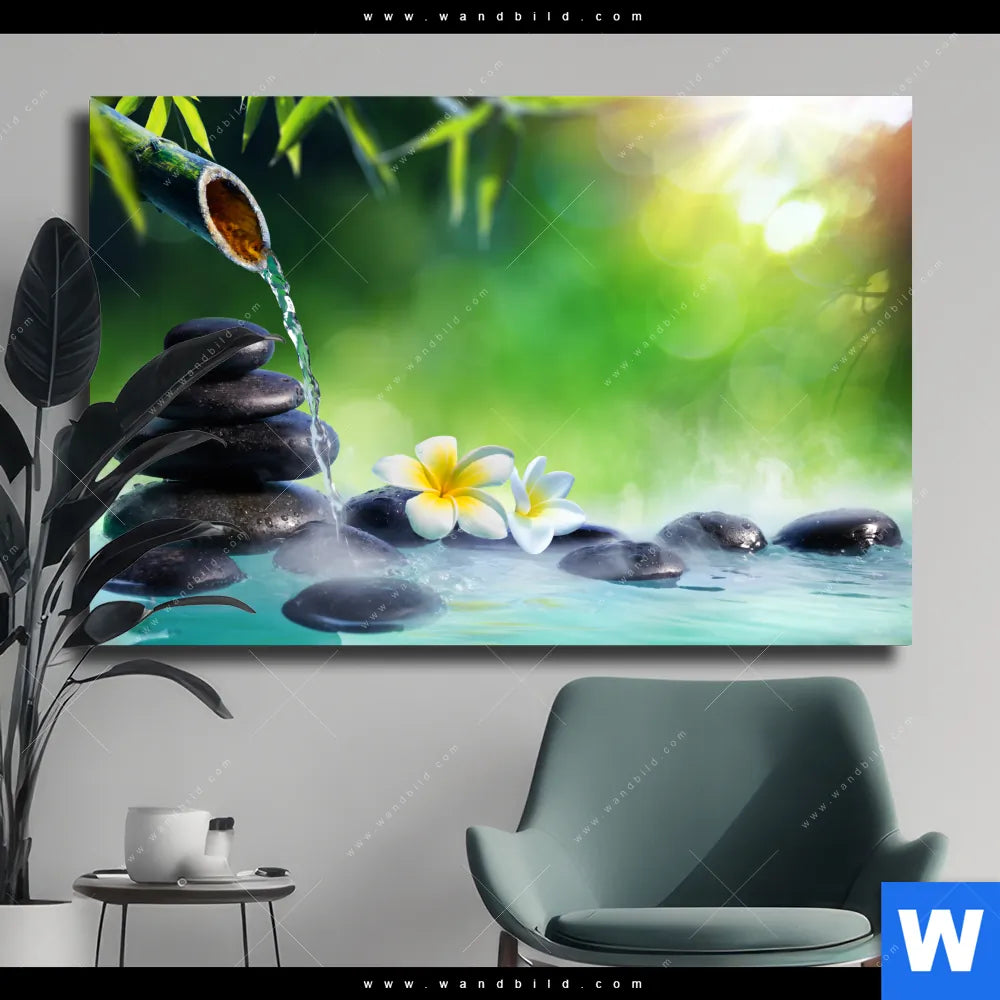 Buddha - Feng Shui, Blumen - Botanik Fotoleinwand aufgespannt auf Holz-Keilrahmen