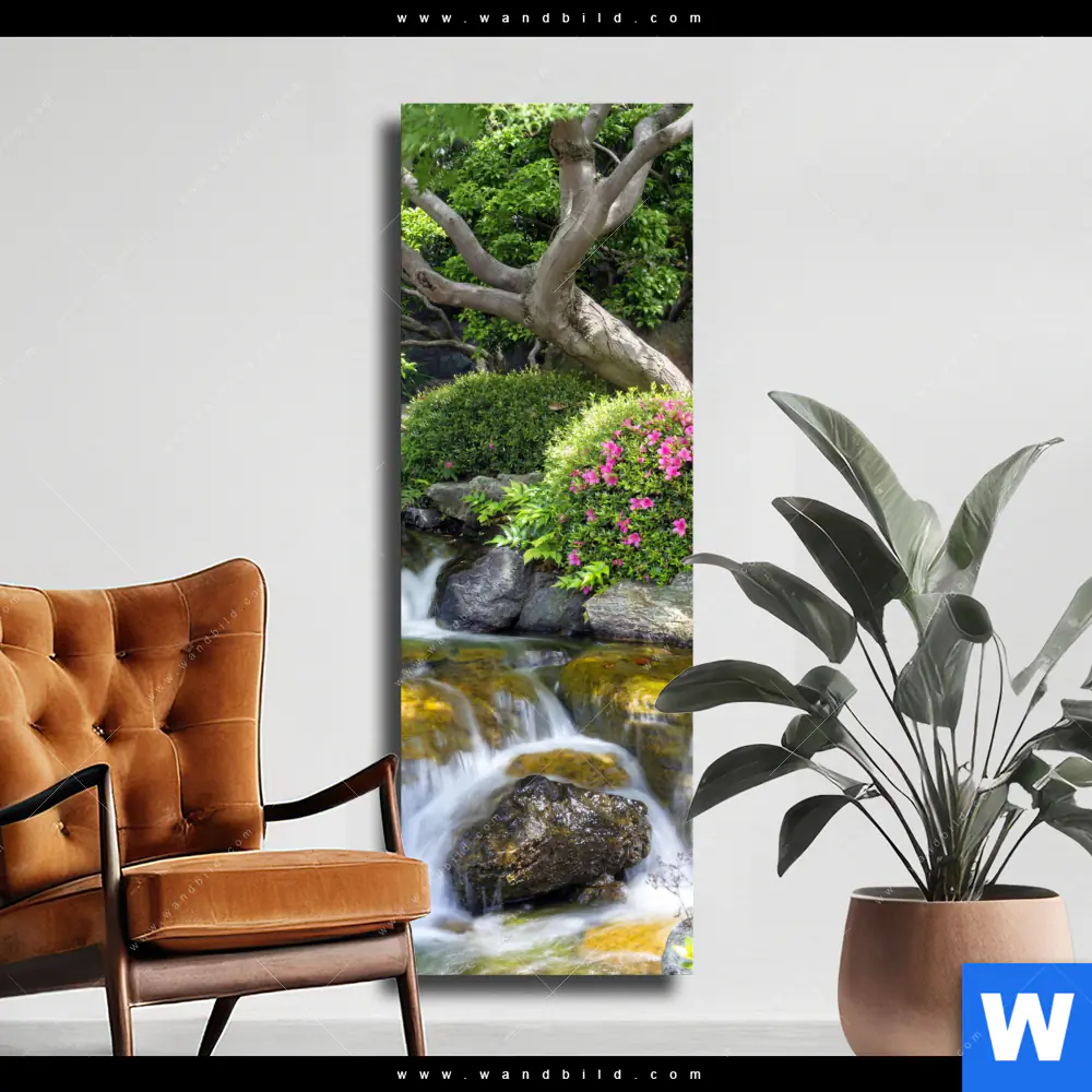Leinwandbild | Japanischer Garten mit Wasserlauf | Schmal