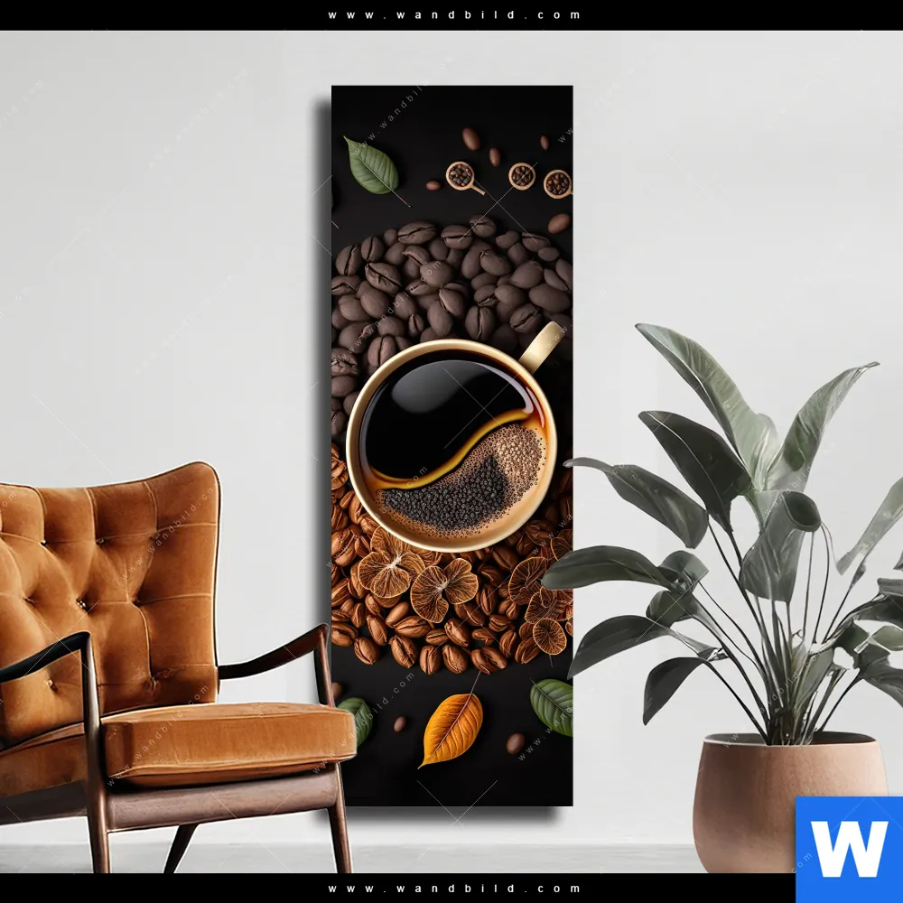 Leinwandbild | Kaffee mit Blattdekoration | Schmal