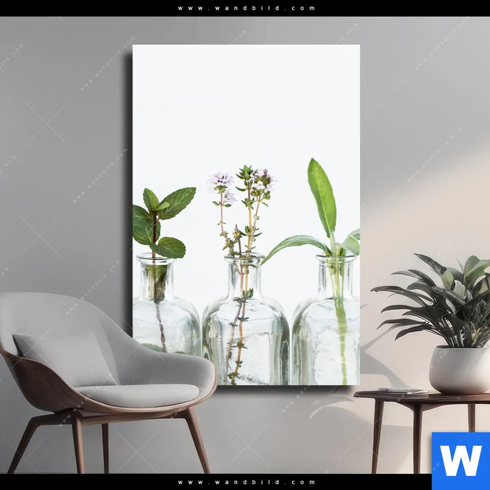 Leinwandbild | Kräuter in Flaschen | Hochformat