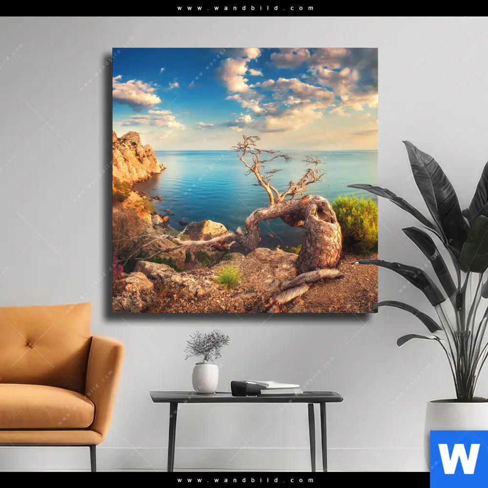 Leinwandbild | Küstenlandschaft mit altem Baum | Quadrat