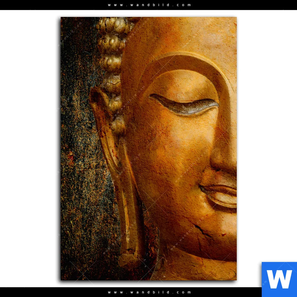 Leinwandbild | Lächelnder Buddha in Gold | Hochformat