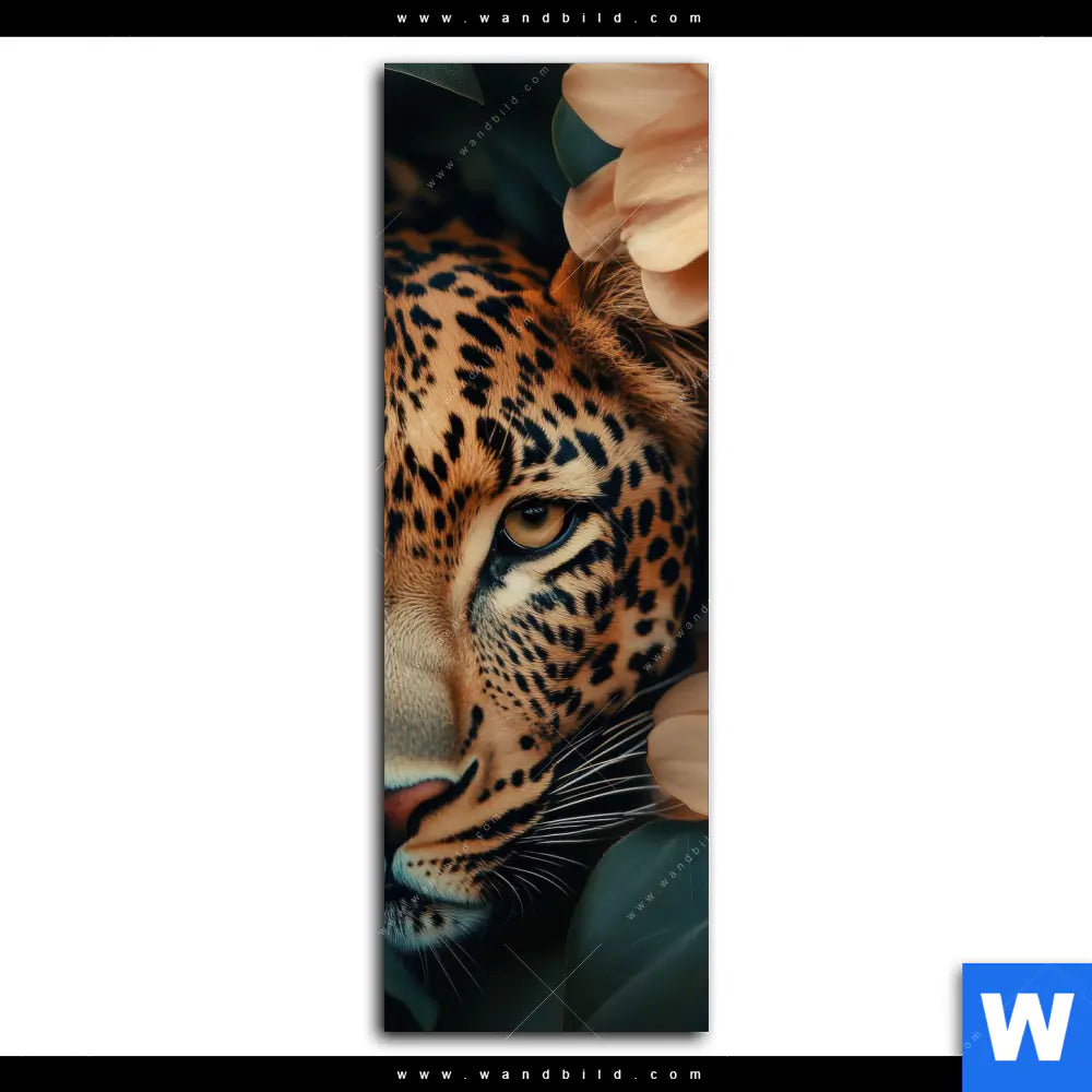 Leinwandbild | Leopard im Blütenmeer | Schmal