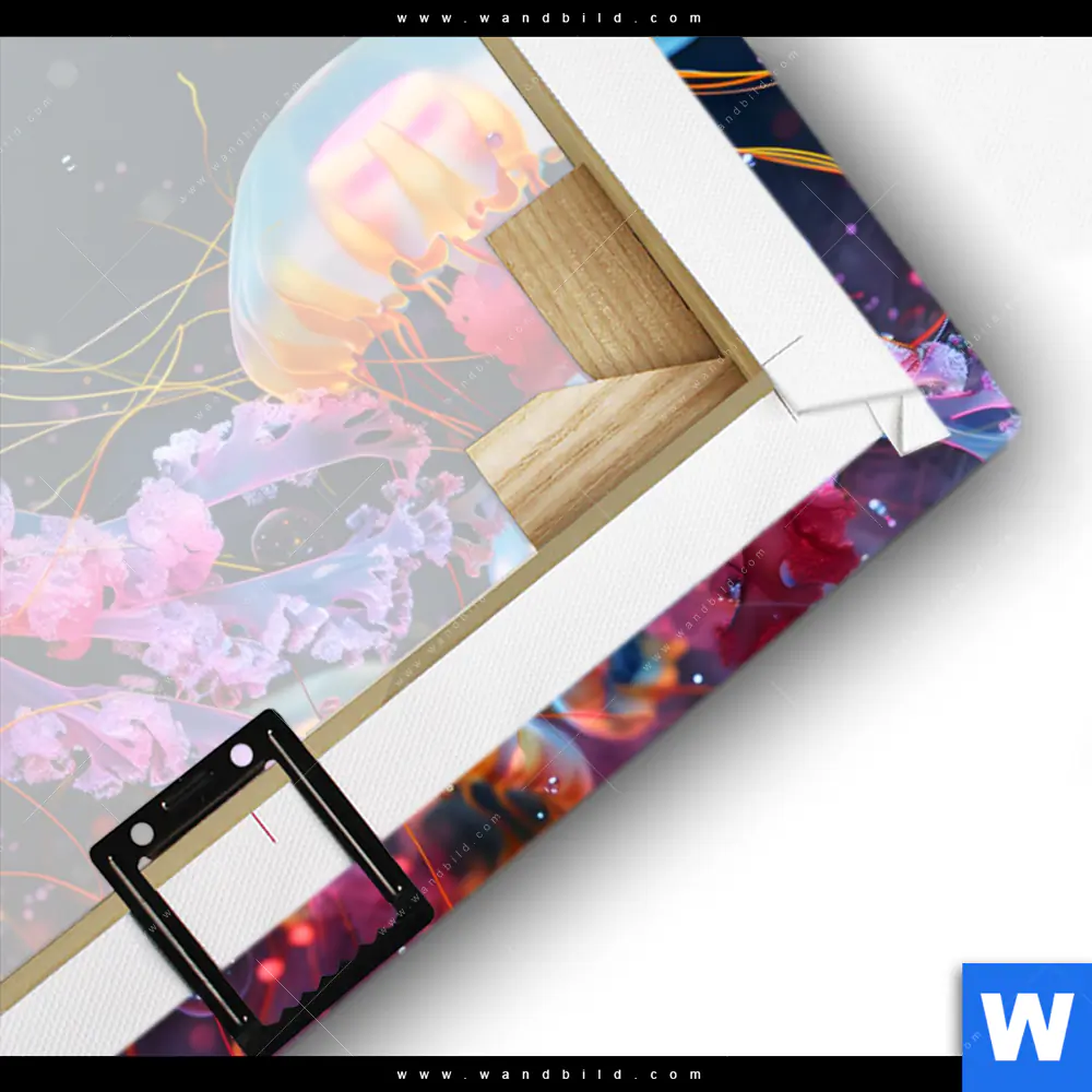 Leinwandbild | Leuchtende Quallen unter Wasser | Querformat
