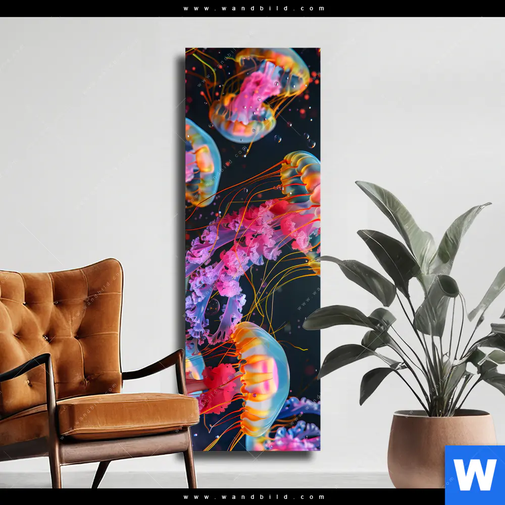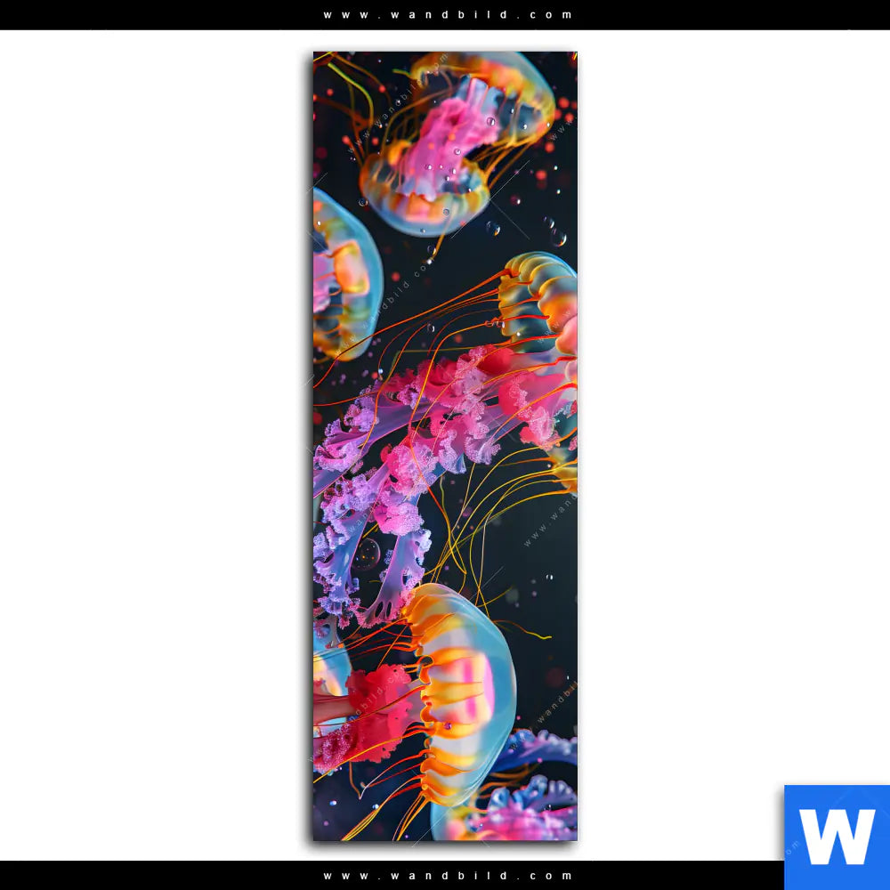 Leinwandbild | Leuchtende Quallen unter Wasser | Schmal