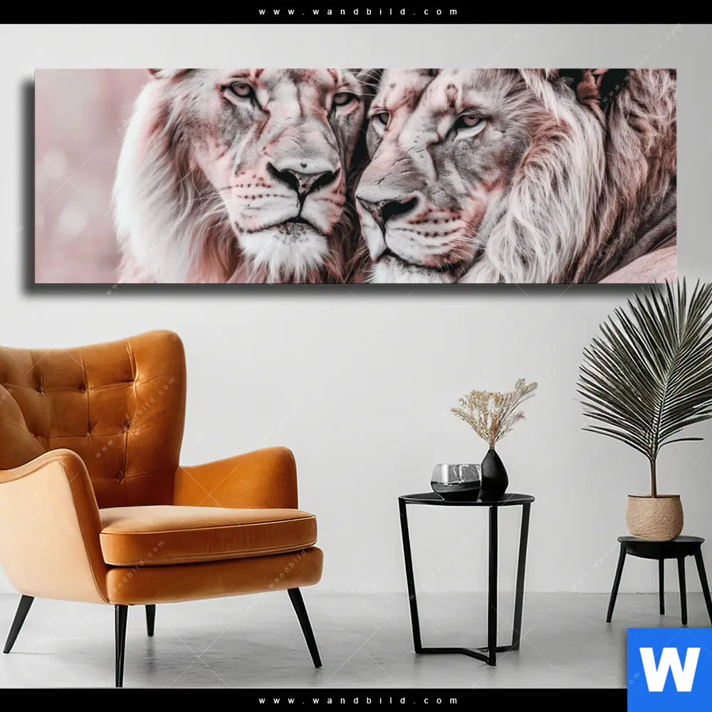 Leinwandbild | Löwen - Harmonie in Pastell | Panorama