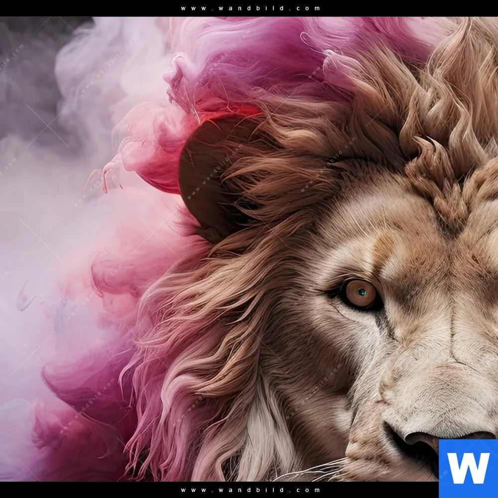 Leinwandbild | Löwengesicht in buntem Rauch | Querformat