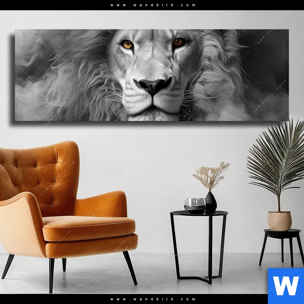 Leinwandbild | Löwengesicht in Rauch | Panorama