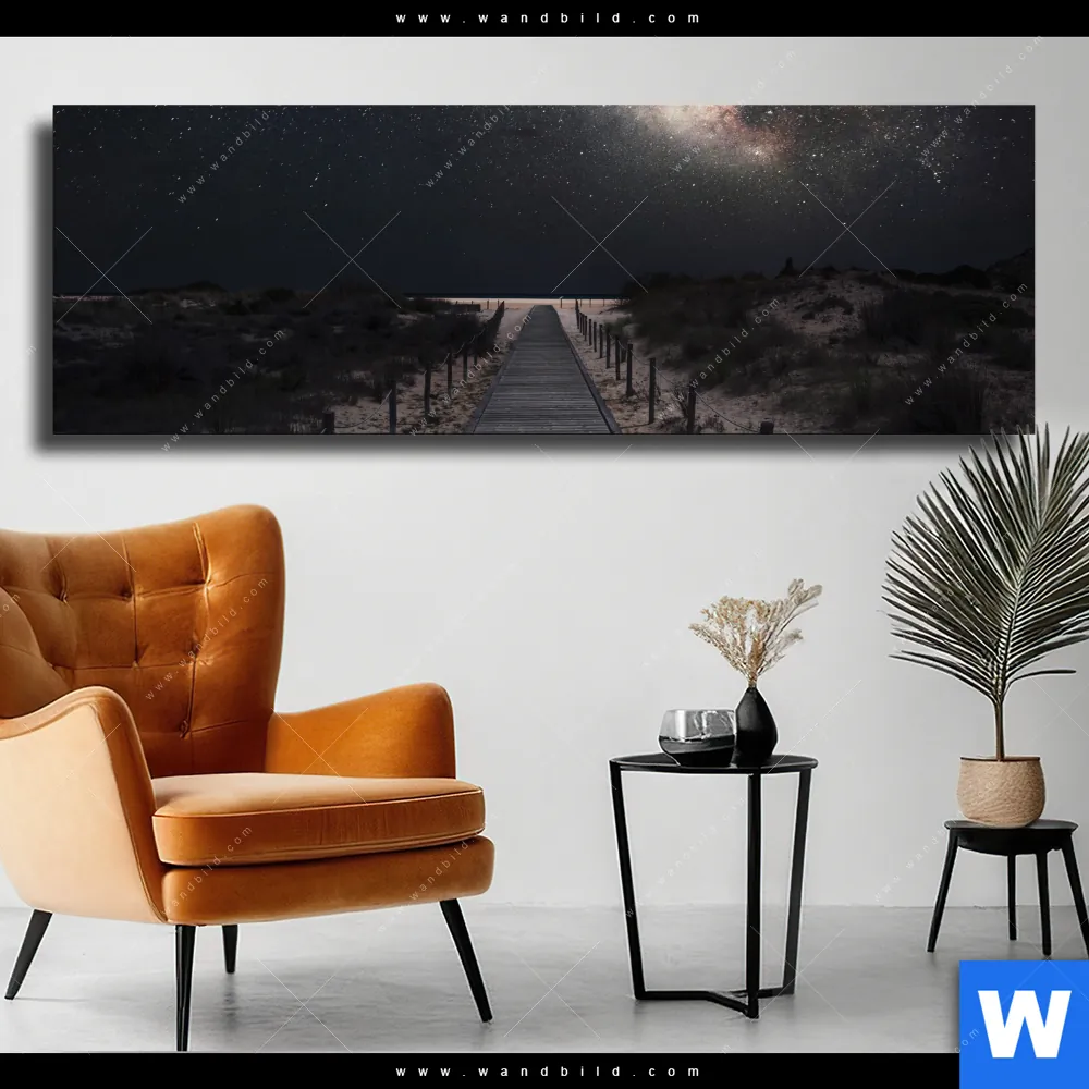 Leinwandbild | Milchstraße über einem Holzweg | Panorama