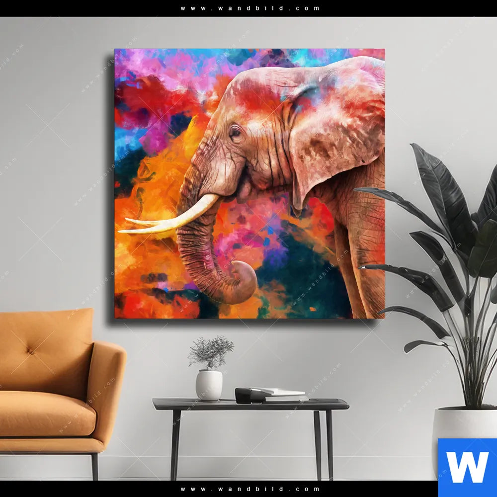 Leinwandbild | Moderner Bunter Elefant | Quadrat