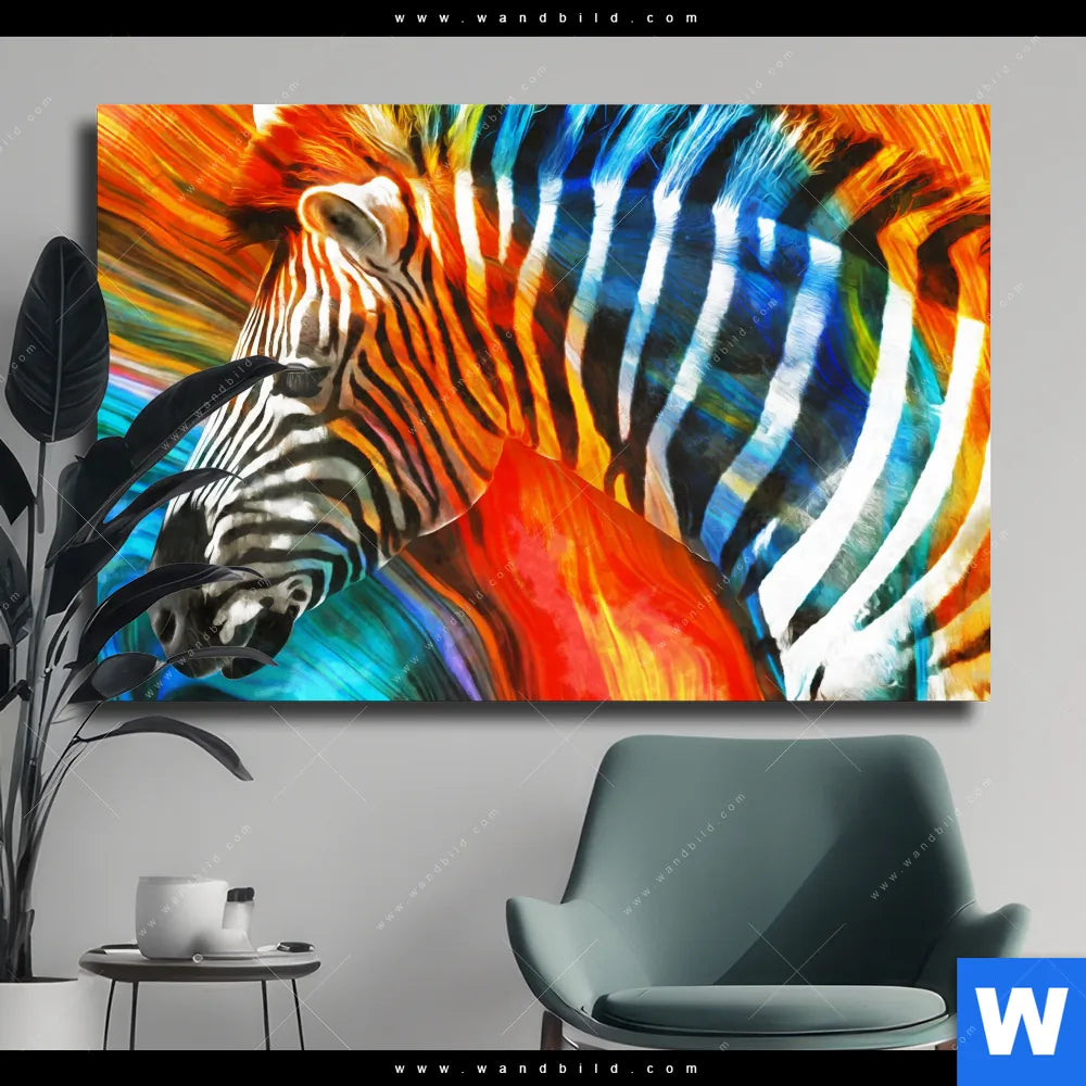 Leinwandbild | Modernes Buntes Zebra | Querformat