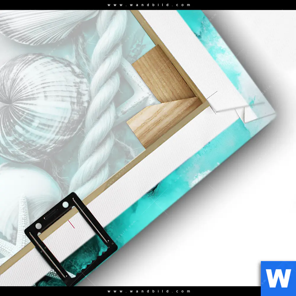 Leinwandbild | Muscheln-Meereszauber in Türkis | Quadrat