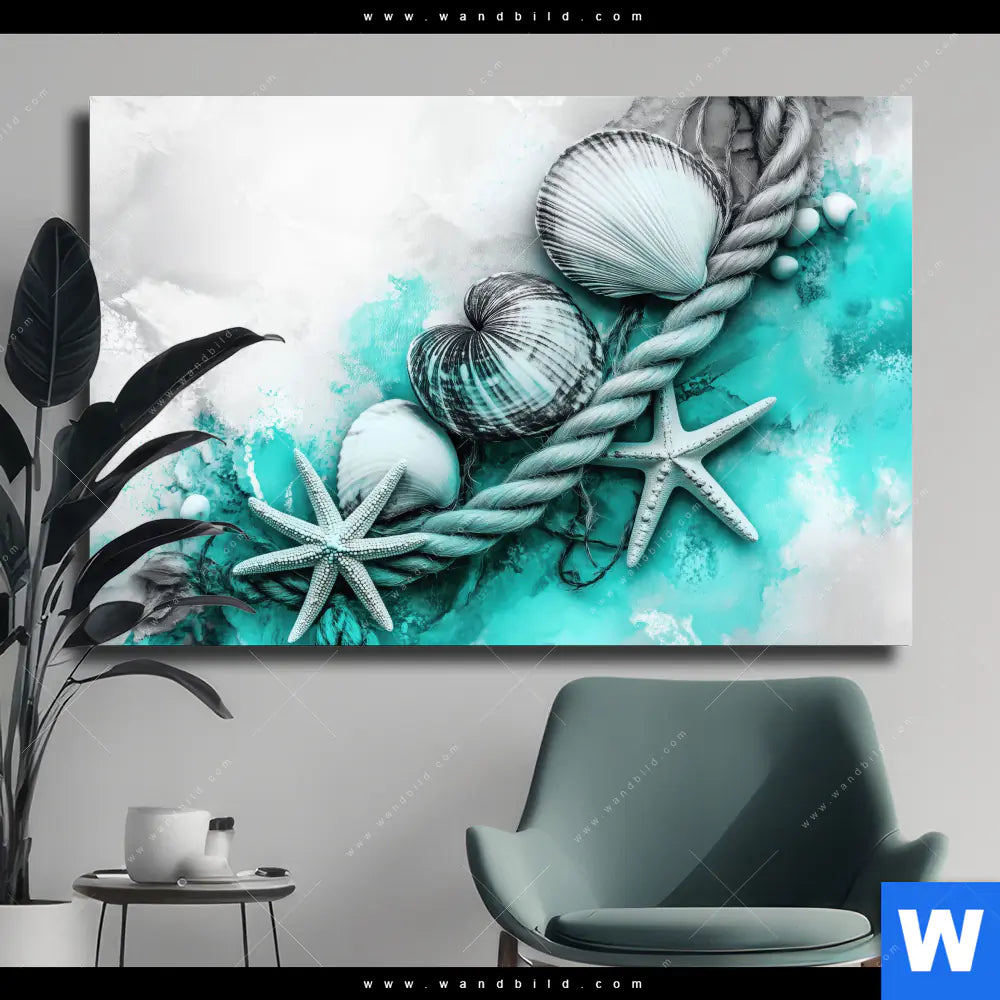 Leinwandbild | Muscheln-Meereszauber in Türkis | Querformat