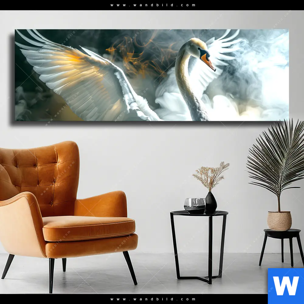 Leinwandbild | Mystischer Schwan im Nebel | Panorama