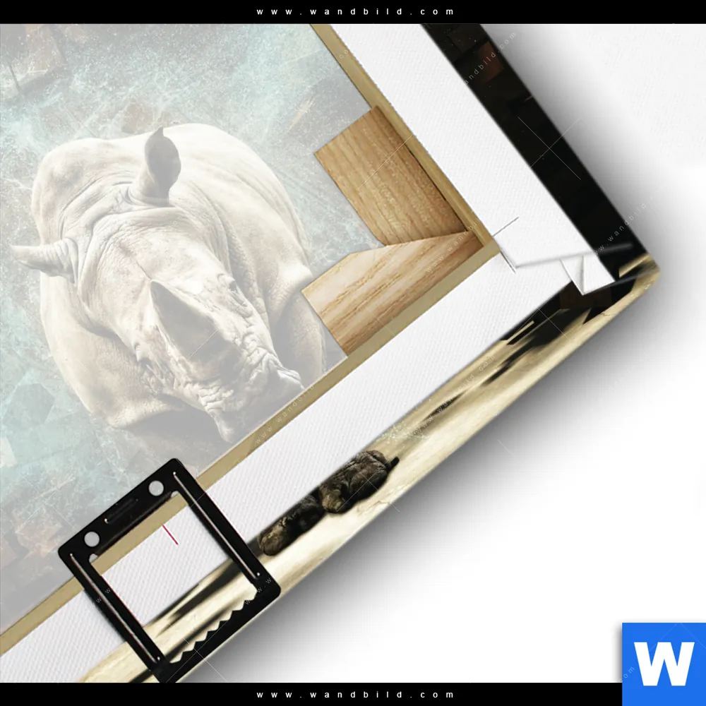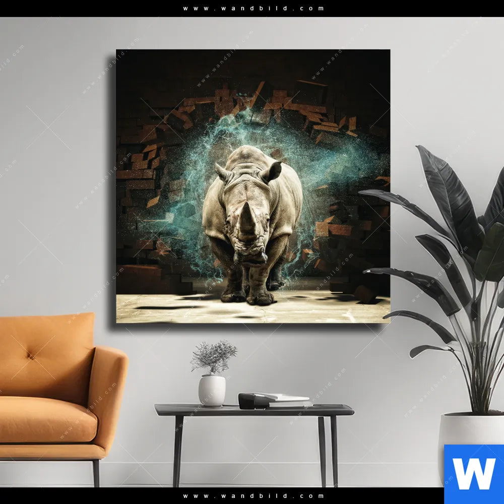 Leinwandbild | Nashorn zerstört Wand | Quadrat