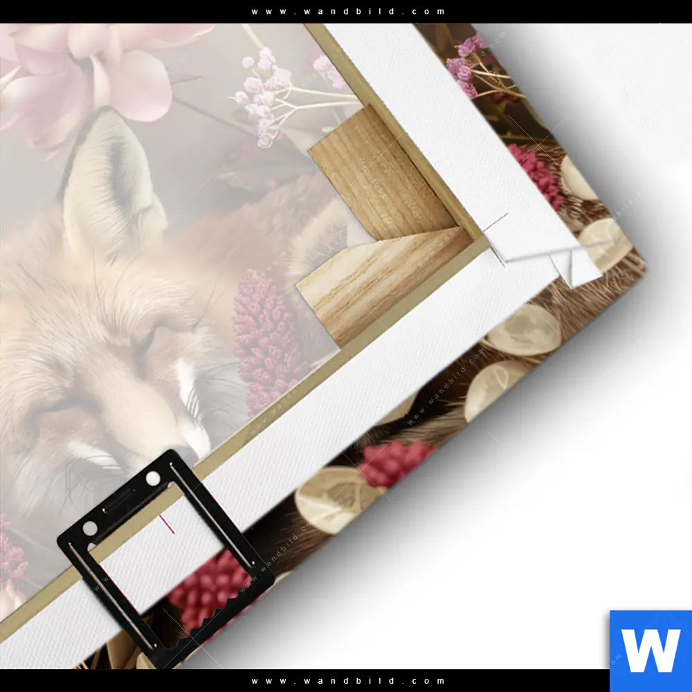 Leinwandbild | Naturbild Fuchs und Blumen | Querformat