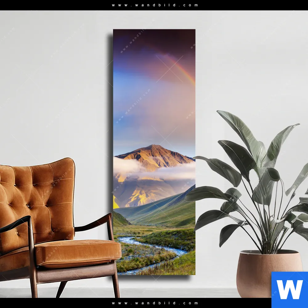Leinwandbild | Nebel und Regenbogen zwischen den Bergen | Schmal