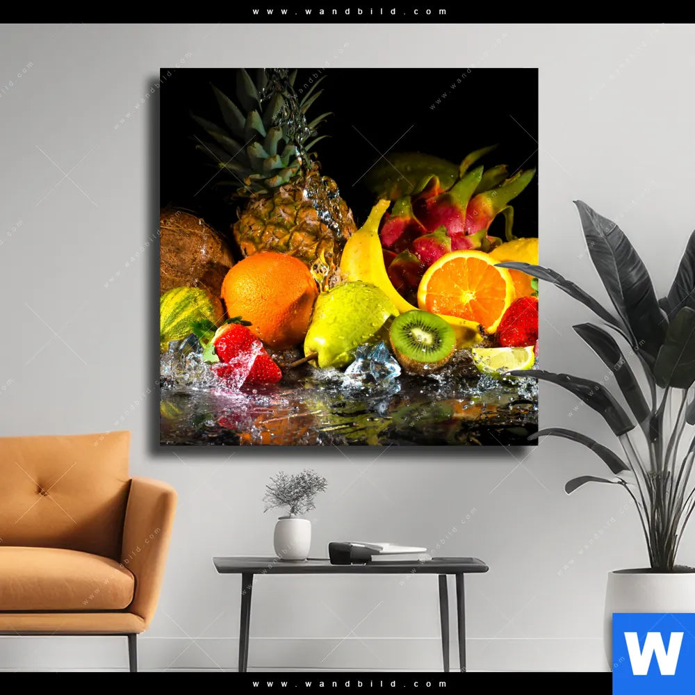 Leinwandbild | Obst-in spritzendem Wasser | Quadrat