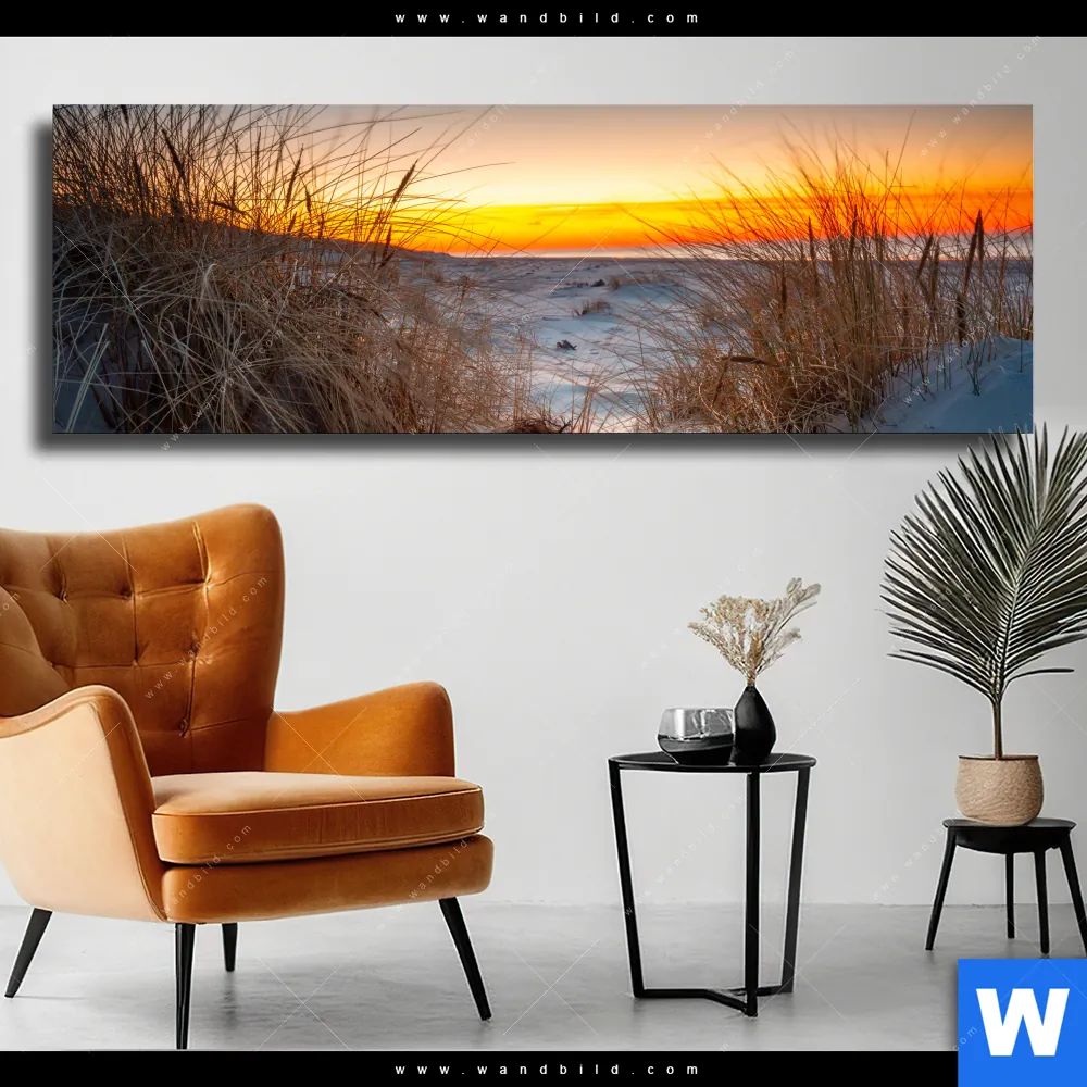 Leinwandbild | Ostseestrand bei Sonnenuntergang | Panorama