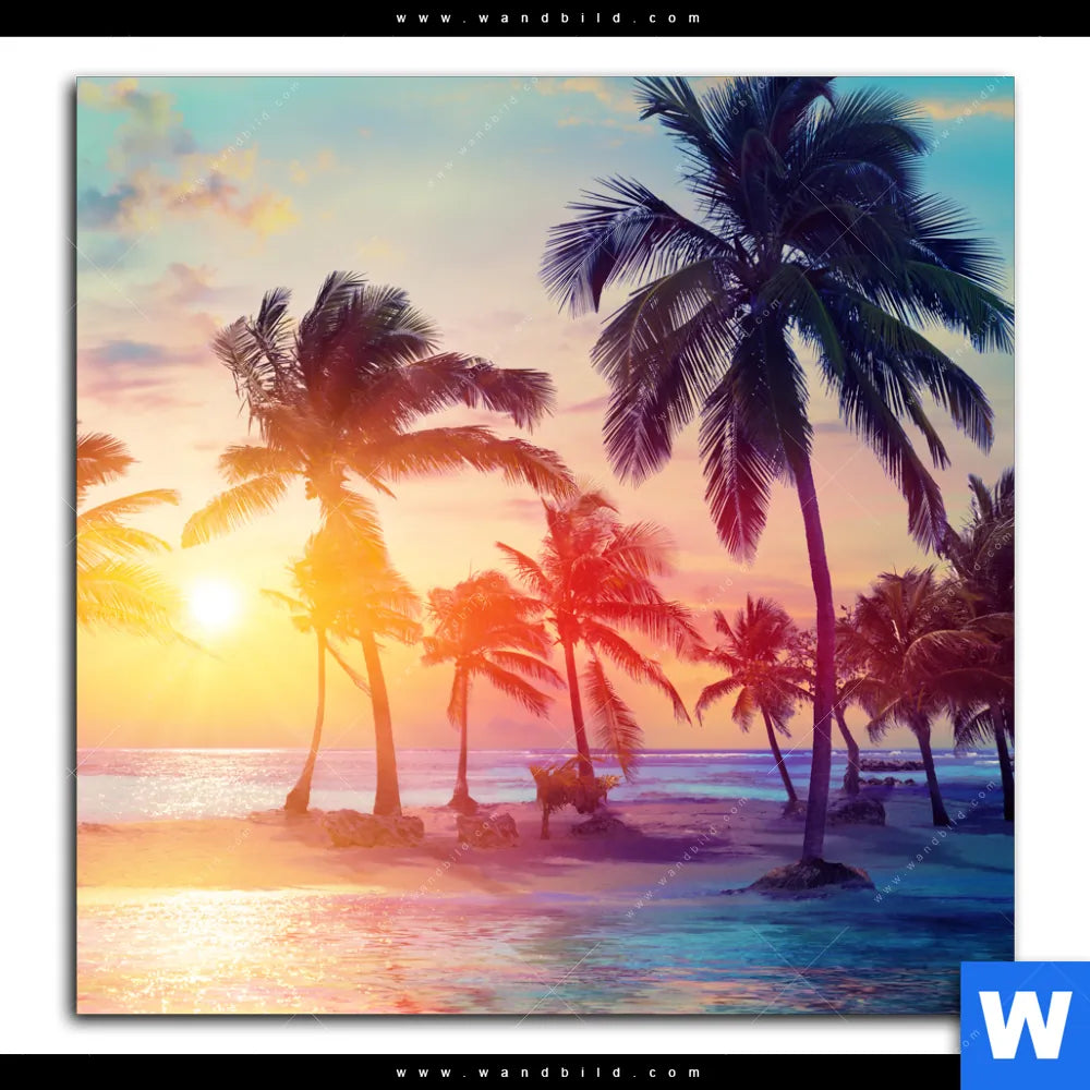 Leinwandbild | Palmen bei Sonnenuntergang | Quadrat