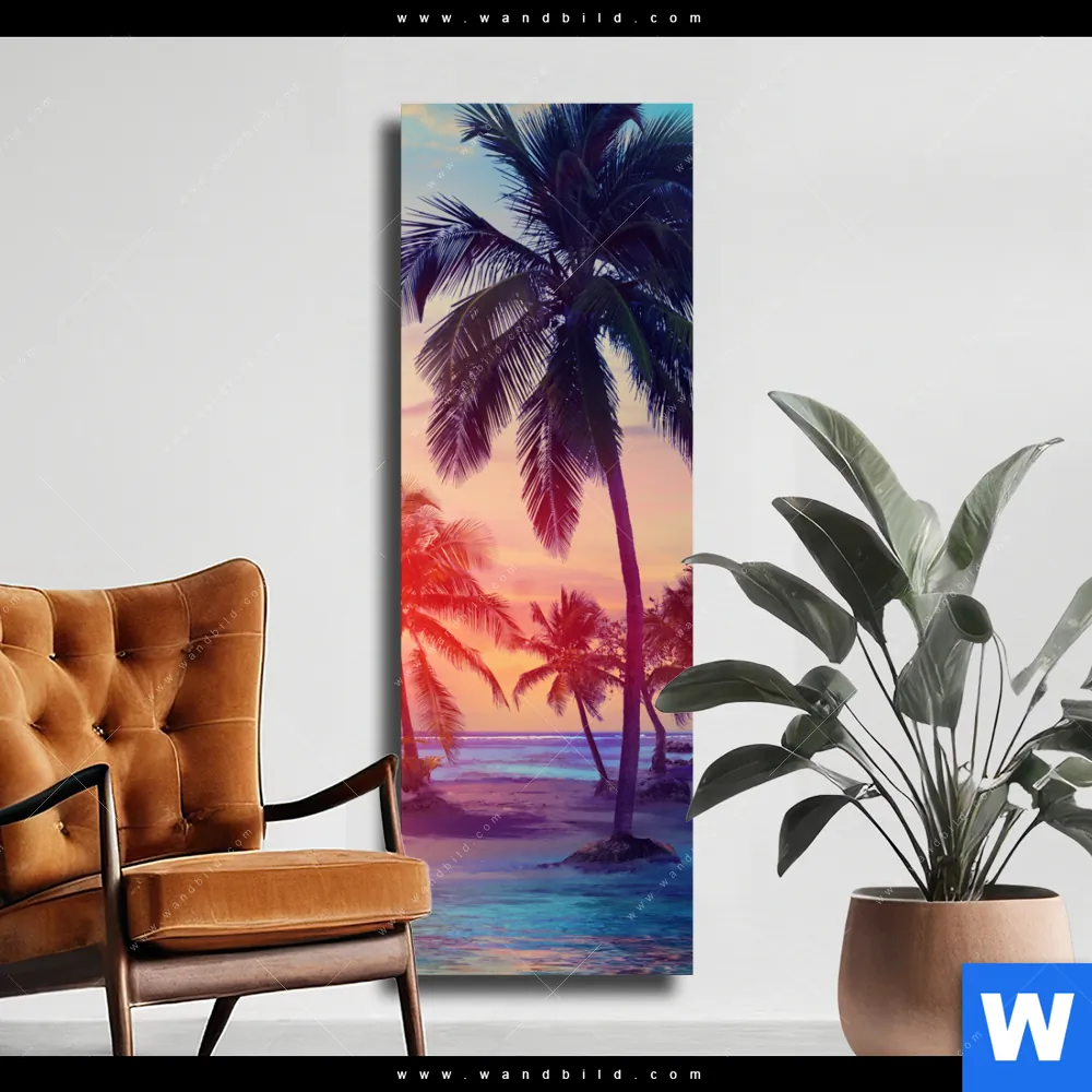Leinwandbild | Palmen bei Sonnenuntergang | Schmal