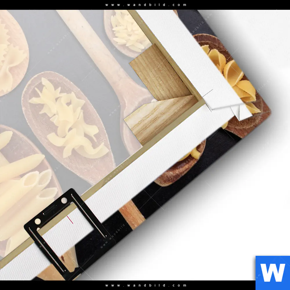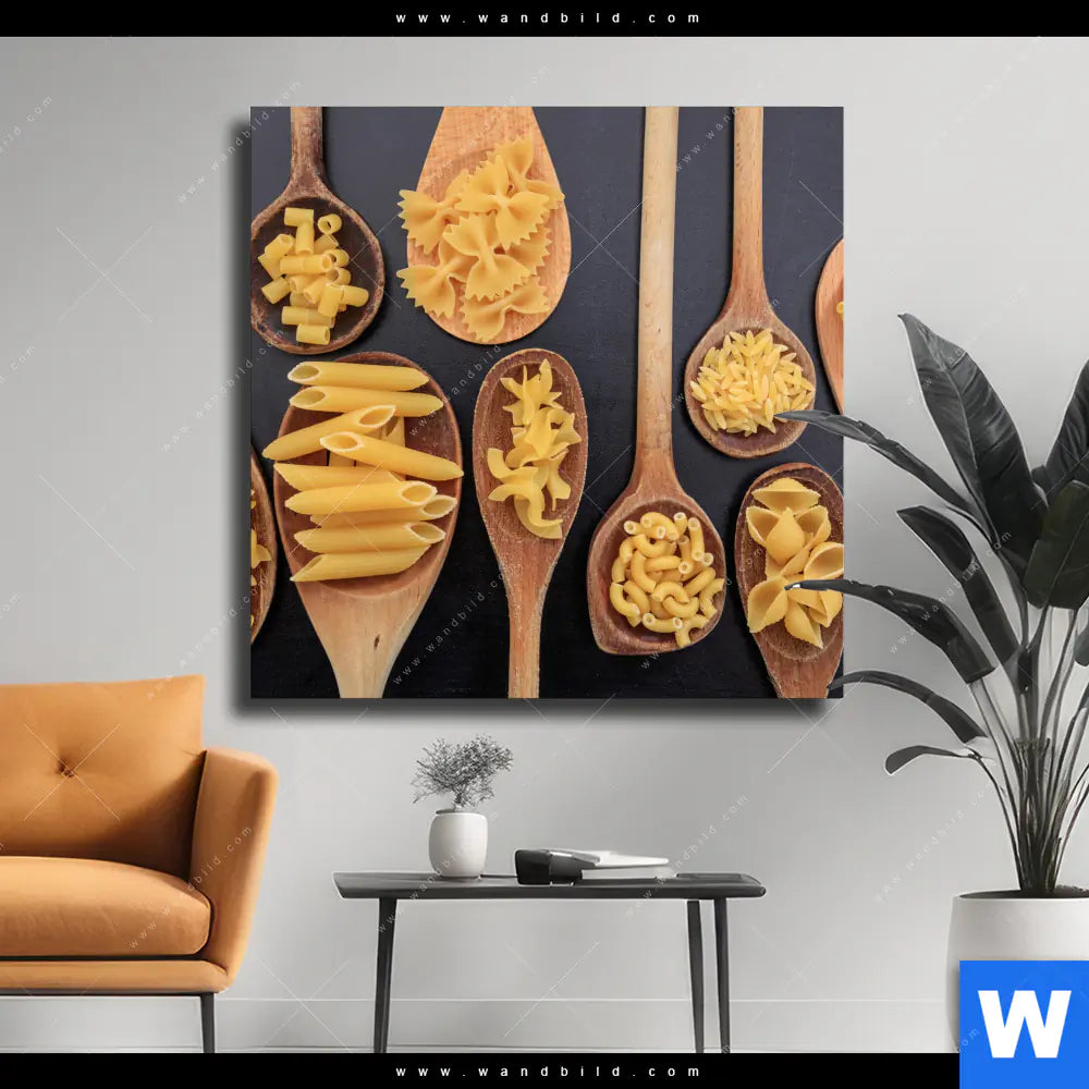Leinwandbild | Pasta auf Löffeln | Quadrat