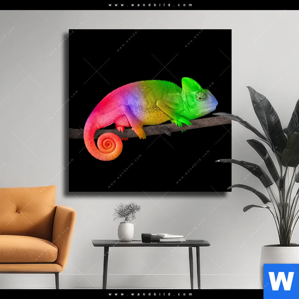 Leinwandbild | Regenbogen Chamäleon | Quadrat