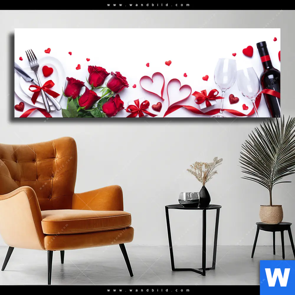 Leinwandbild | Romantik mit Rotwein | Panorama