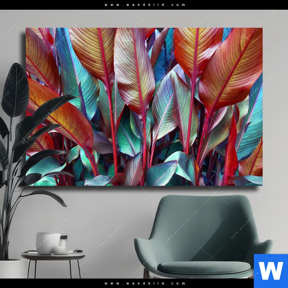 Leinwandbild | Rote und smaragdgrüne Blätter | Querformat