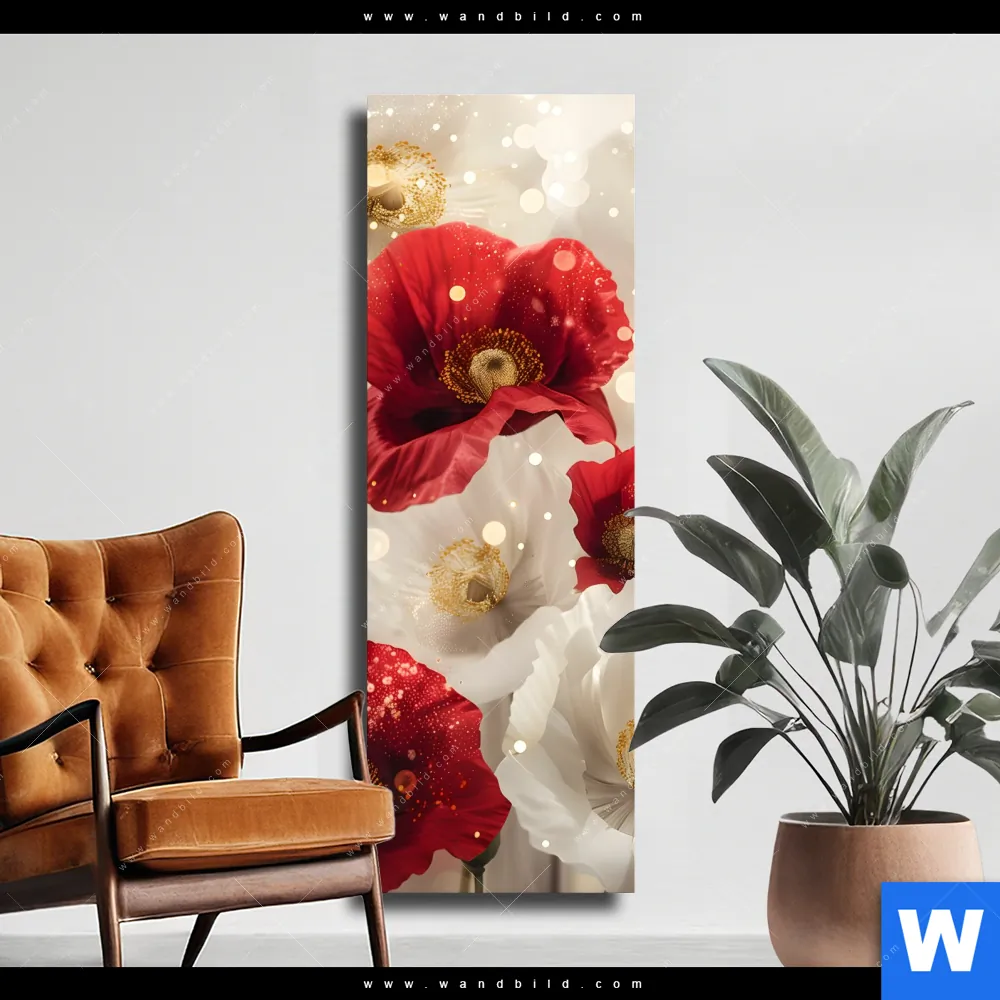 Leinwandbild | Rote und weiße Mohnblumen | Schmal