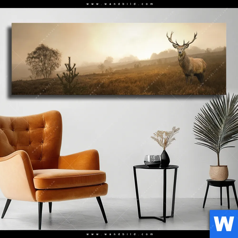 Leinwandbild | Rothirsch im Nebel | Panorama