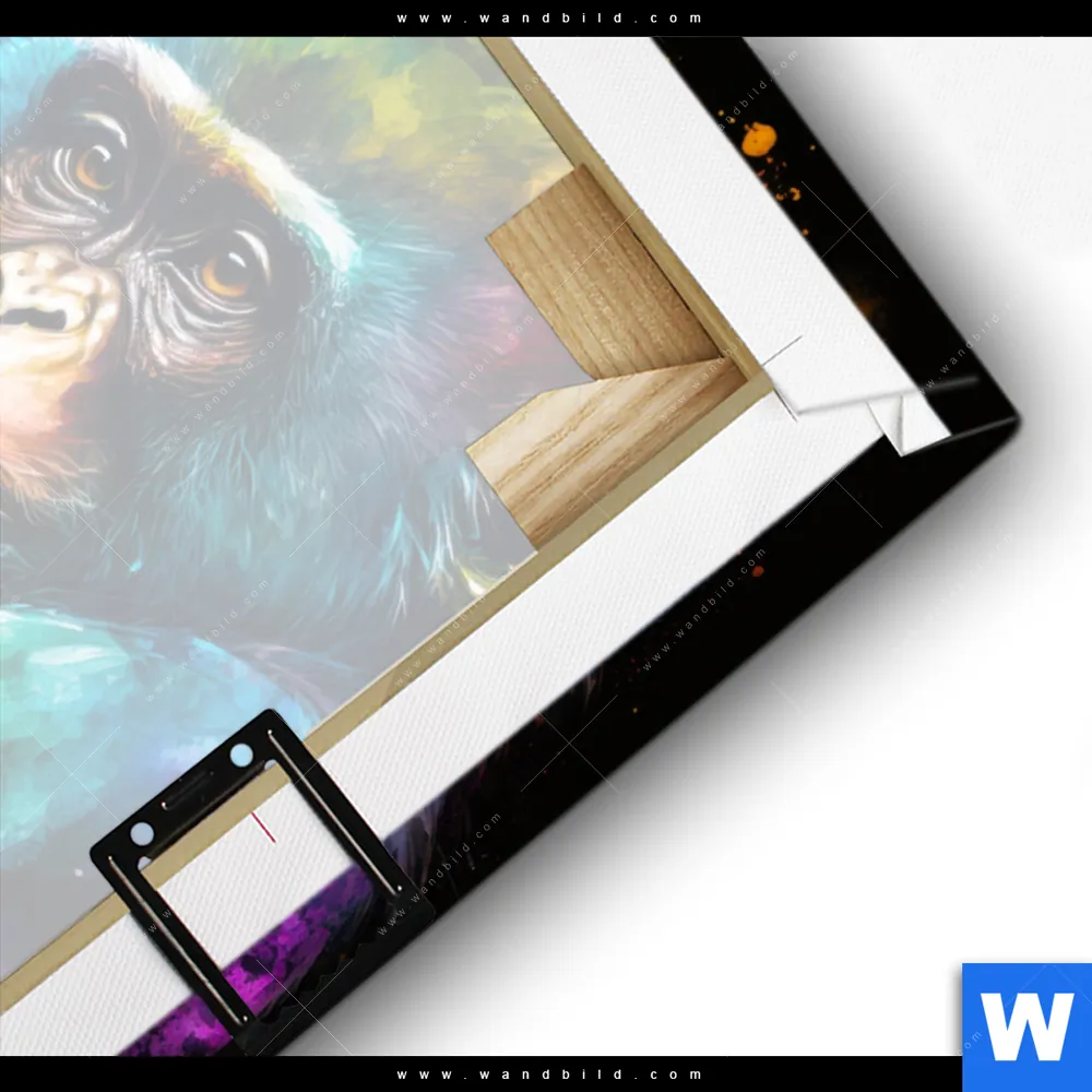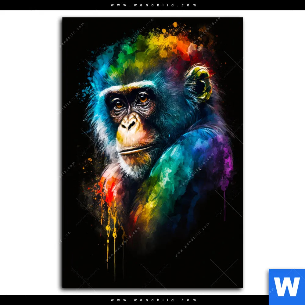 Leinwandbild | Schimpanse in bunten Farben | Hochformat