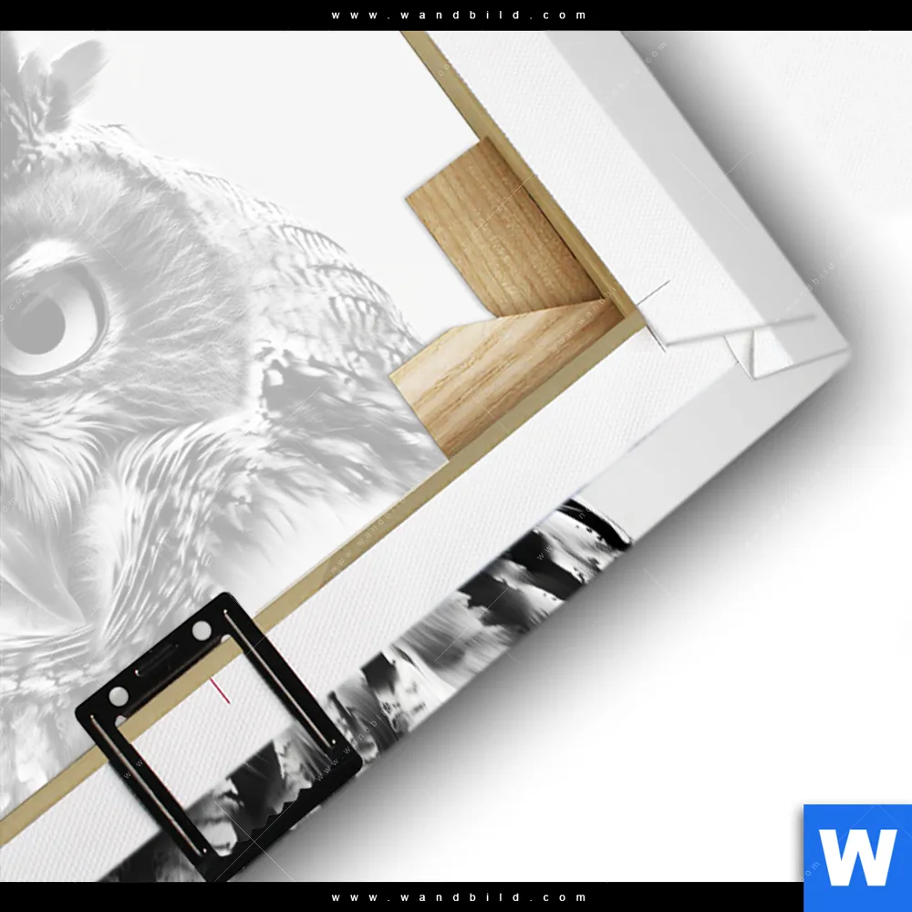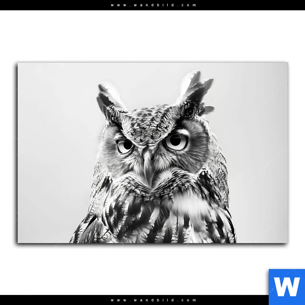 Leinwandbild | Schwarz-Weiß Eulenportrait | Querformat