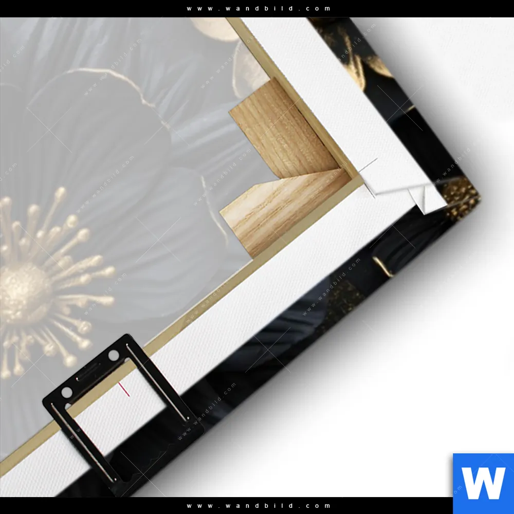 Leinwandbild | Schwarze und goldene Blüten | Panorama