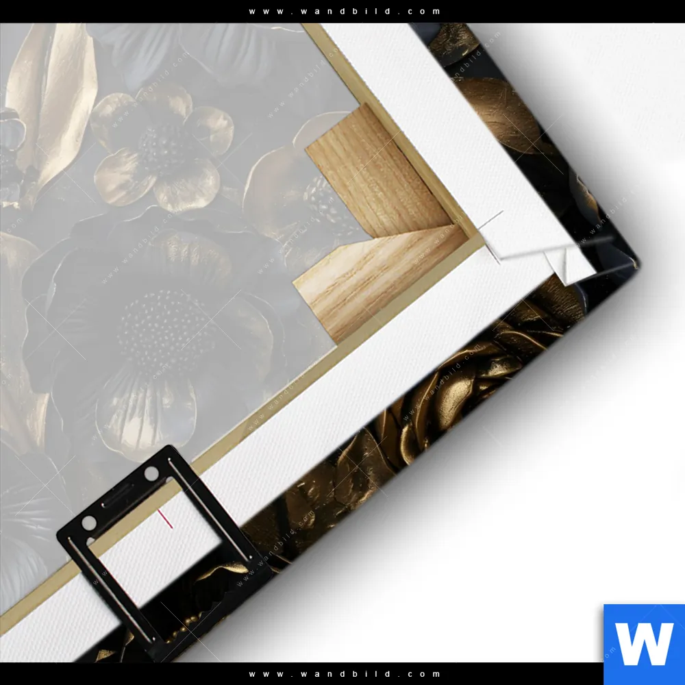 Leinwandbild | Schwarze und goldene Blüten | Quadrat