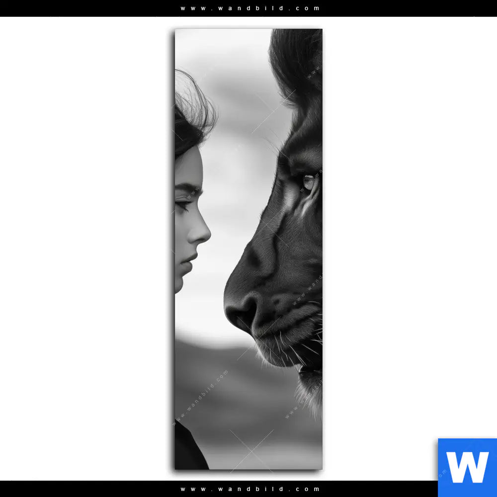 Leinwandbild | Seelenblick - Löwe & Frau | Schmal
