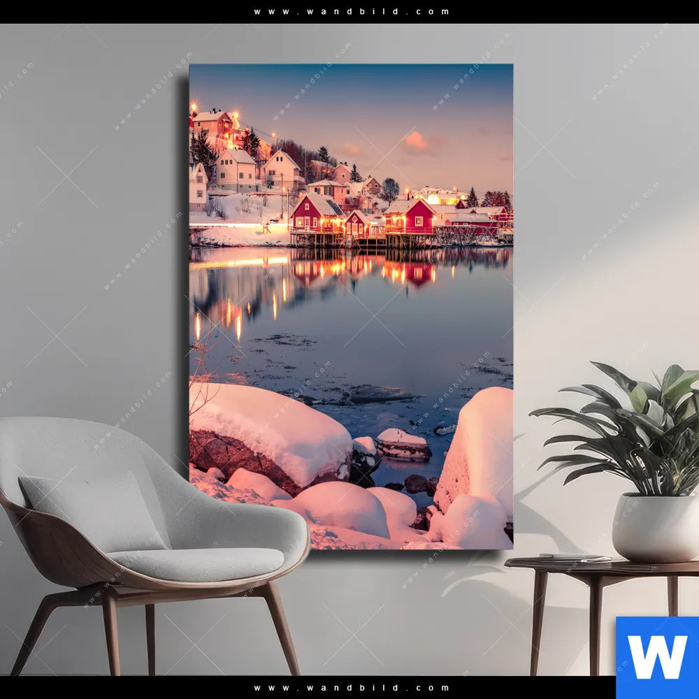 Leinwandbild | Skandinavische Stadt bei Nacht | Hochformat