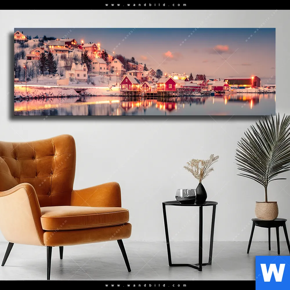 Leinwandbild | Skandinavische Stadt bei Nacht | Panorama