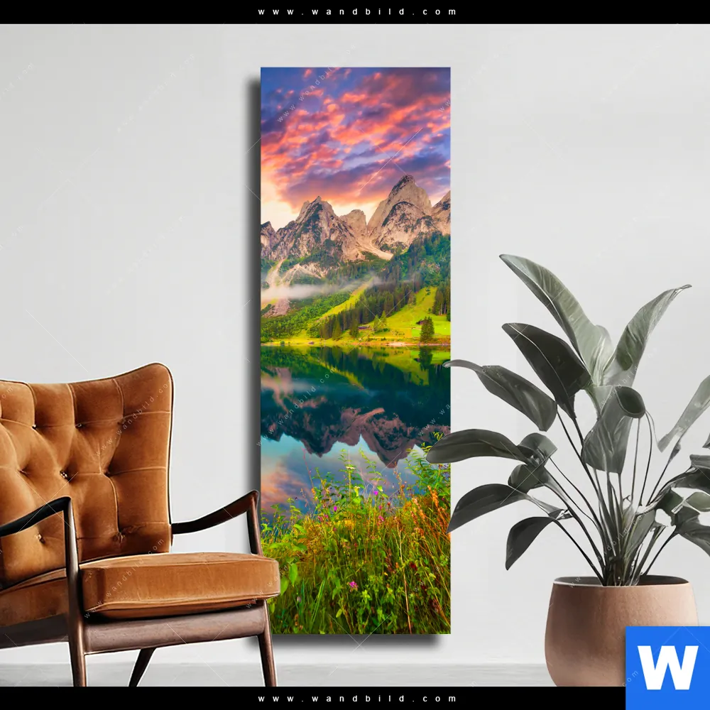 Leinwandbild | Sonnenaufgang am Bergsee | Schmal