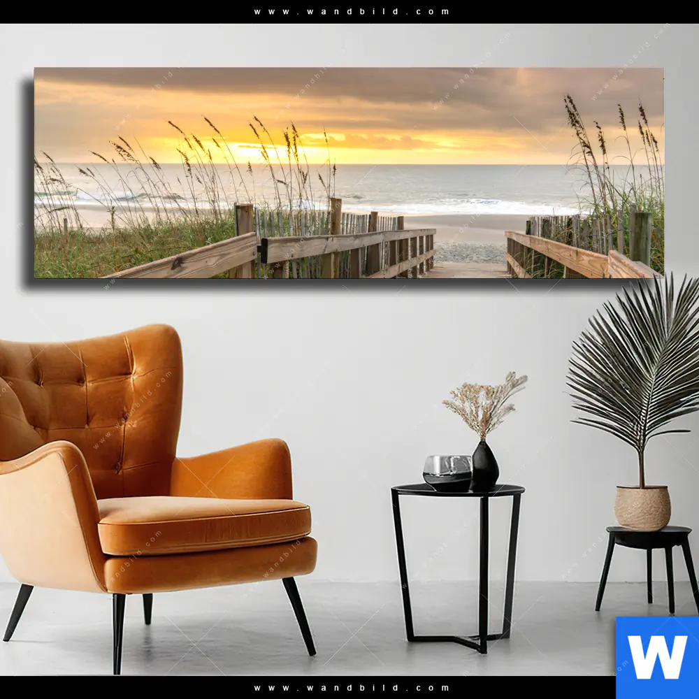 Leinwandbild | Sonnenuntergang am Strandweg | Panorama