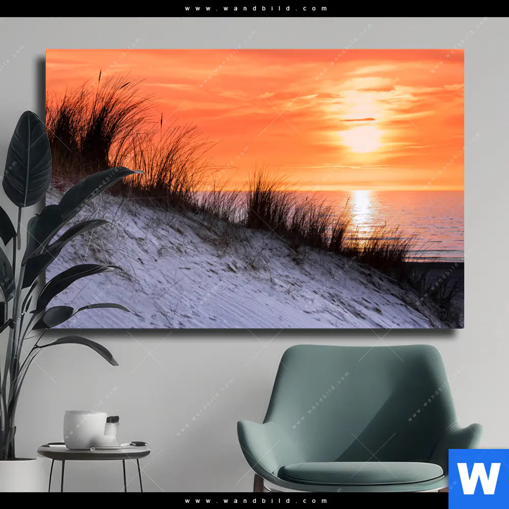 Leinwandbild | Sonnenuntergang mit Düne und Meer | Querformat