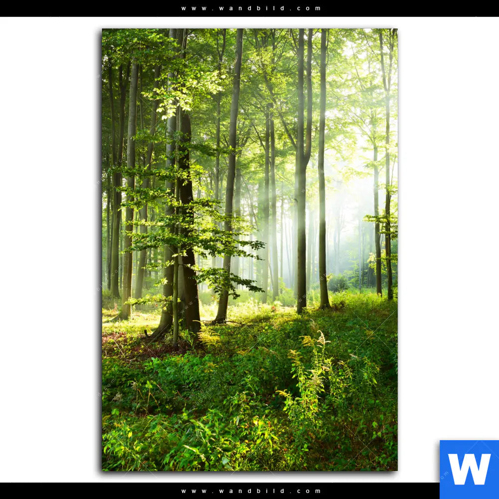 Leinwandbild | Sonniger Morgen im Wald | Hochformat