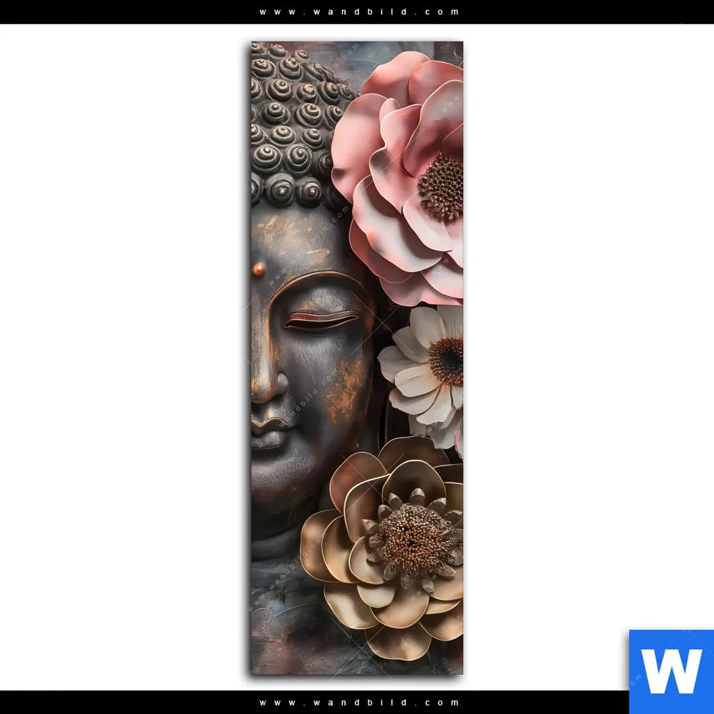 Leinwandbild | Spiritueller Buddha und Blumen | Schmal